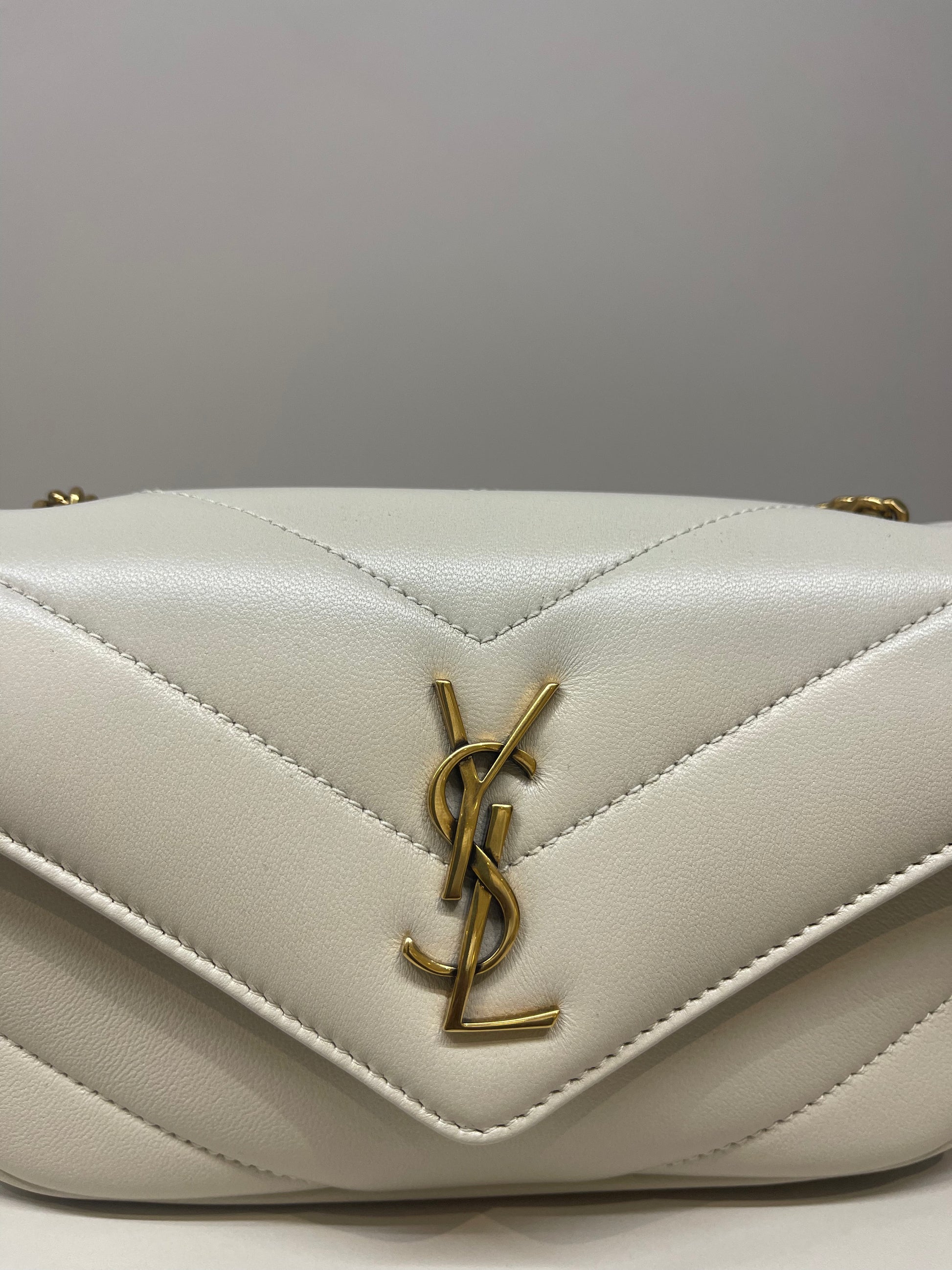 SAINT LAURENT LOULOU BAG IN WHITE WITH GOLD TONE HARDWARE